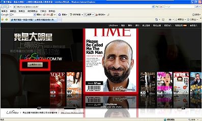 請開啟「http://cover.lifeshow.com.tw/」網站後,按一下〔上傳照片!GO〕按鈕。